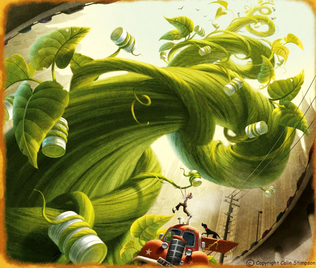 Mi viene in mente la favola di un ragazzo orfano e povero che ha un unico fagiolo per sfamarsi e lo pianta nella terra di un vaso prima di andare a dormire digiuno. La mattina dopo trova nel vaso una pianta così alta e robusta da trasportarlo in alto oltre le nuvole, fino ad un regno magico che gli porterà denaro e fortuna.